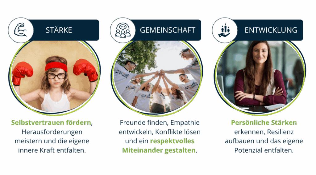 An allgemeinbildenden Schulen fördern wir Resilienz, Selbstbehauptung und soziales Lernen – damit Kinder und Jugendliche lernen, mit Druck, Konflikten und digitalen Einflüssen souverän umzugehen und Verantwortung für sich und andere zu übernehmen.